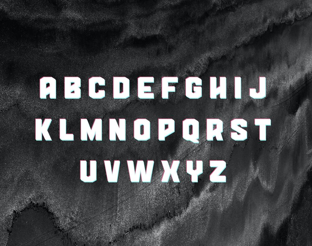 THROB is a bold display font, with a rough and industrial style. The font features chamfered corners at 30 degrees for a powerful and edgy visual.